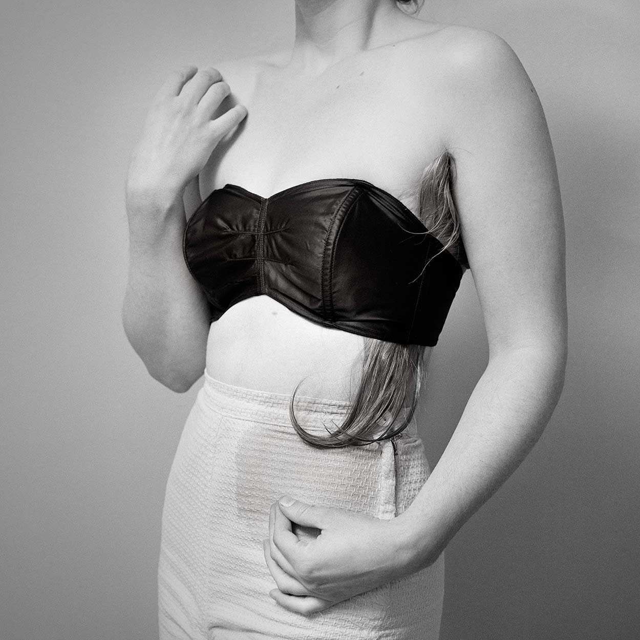 I question if patriarchal ideas can be dismantled and power can be regained once a body is no longer required to be smaller, hairless, and inherently vulnerable. The work uses photographs, looped video, and small sculptures to explore how the female body can be emboldened rather than reduced.